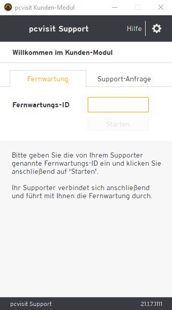 - Bitte klicken Sie zum Starten des pcvisit-Support Tools auf den folgenden Link: „Remote QuickSupport“